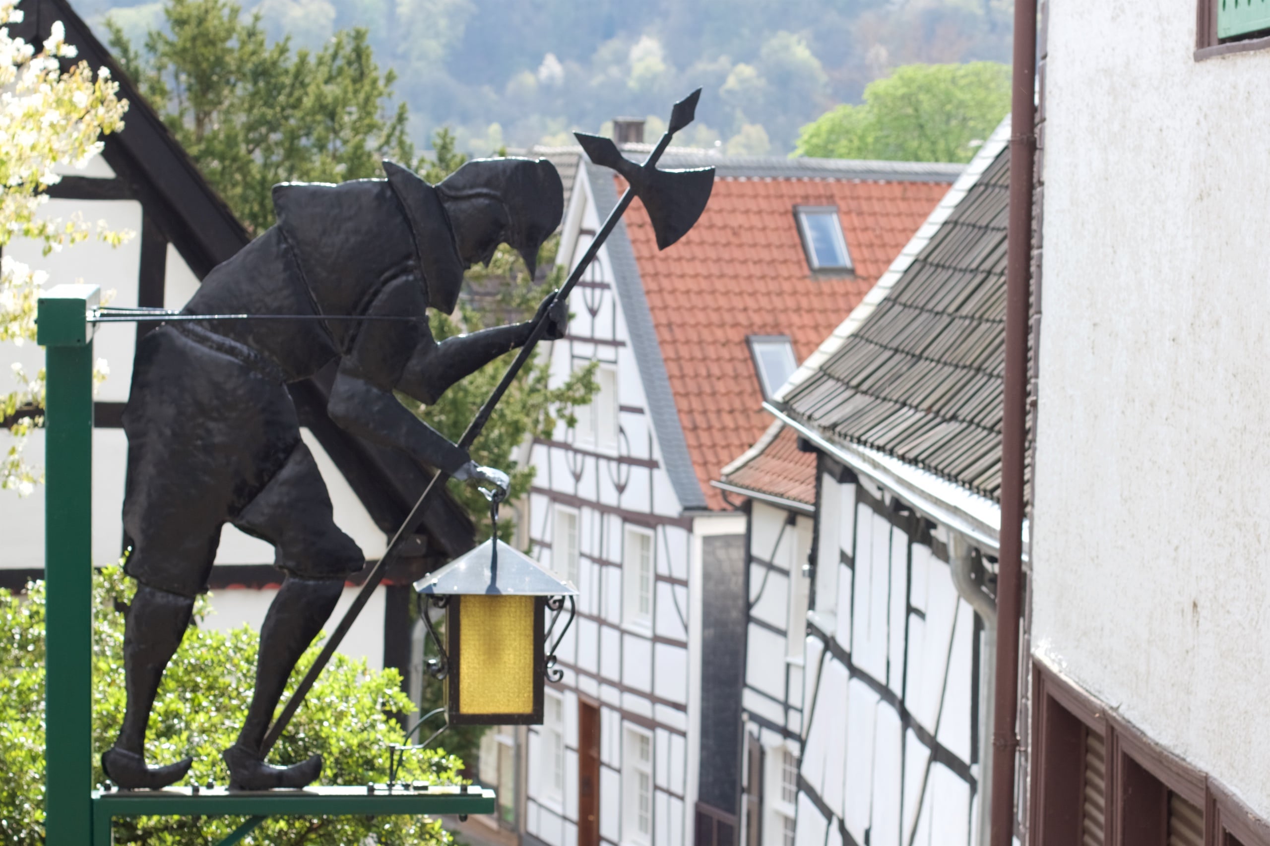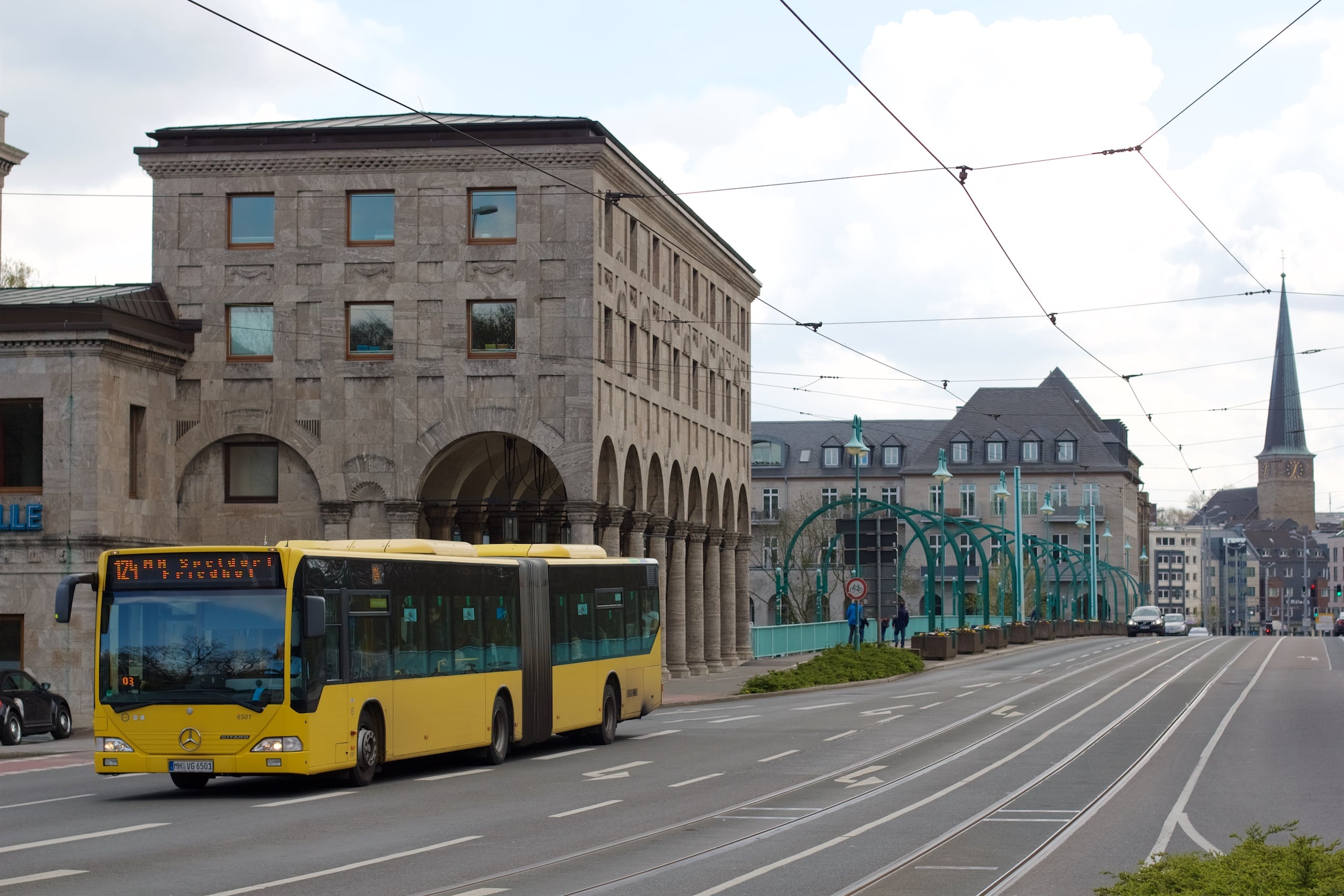 Die Sonne ging damals bereits auf Höhe des Baldeneysees unter und so sahen wir Kettwig und den Weg bis Mülheim nur im Dunkeln. Viel zu schade! Deswegen begann unsere Fortsetzung direkt an der Eisenbahnbrücke in Kettwig, zu der wir mit dem Auto gefahren wurden. Taschen drauf, aufgesattelt – auf geht’s! Obwohl es im Laufe des Tages immer mal wieder Flecken blauen Himmels gab und die Sonne ordentlich schien, wurde es im Wind kalt und ich war froh, doch im langärmligen Shirt losgefahren zu sein. Wir rollten einige Meter durch Kettwig und schauten uns die Altstadt/Innenstadt an und dann ging es los.