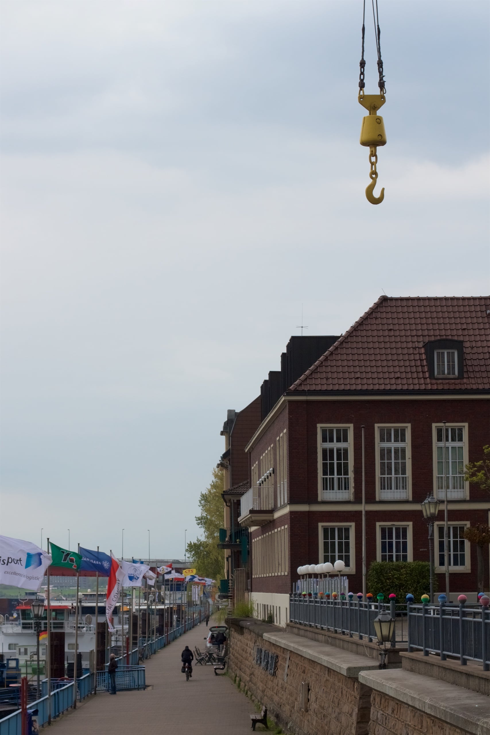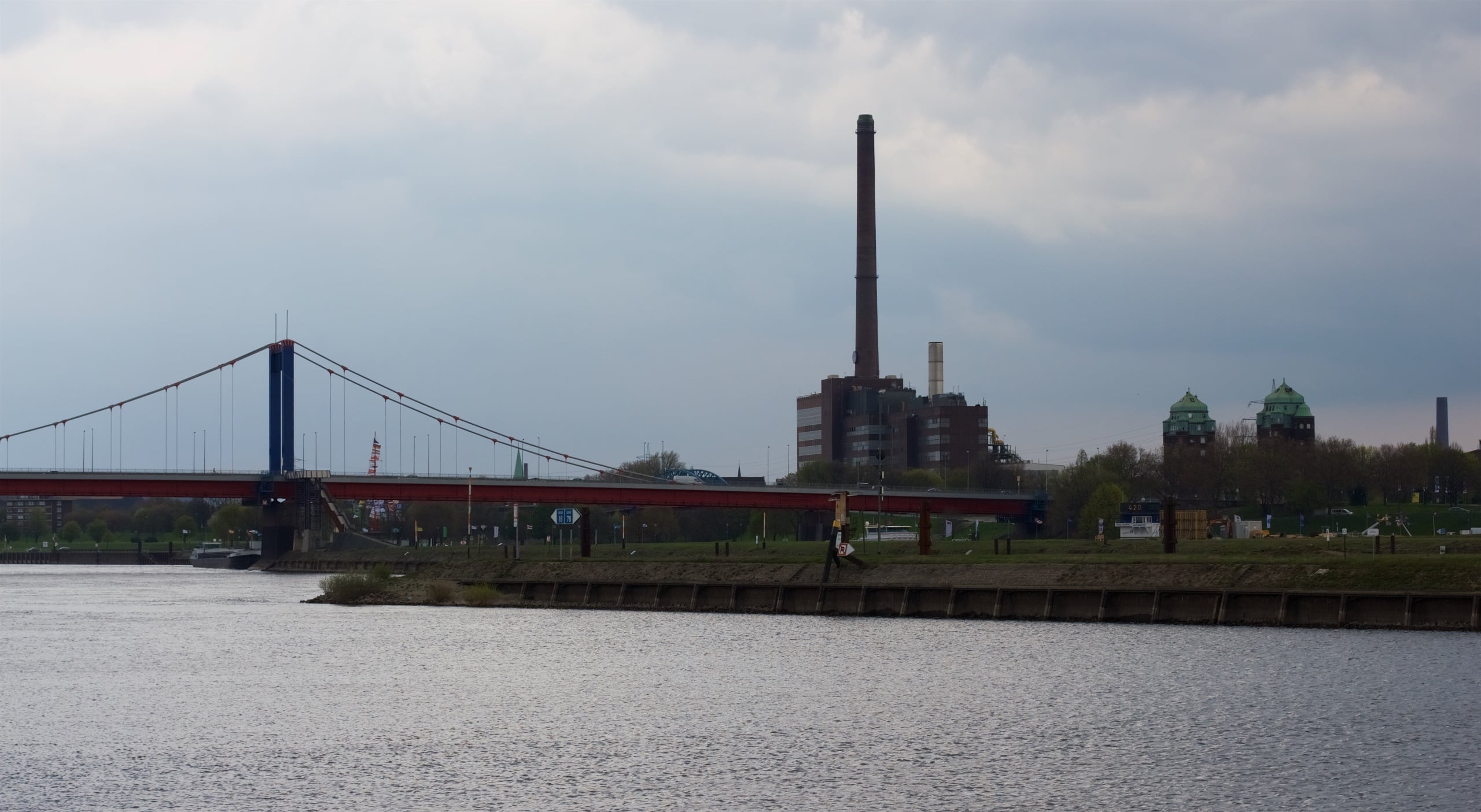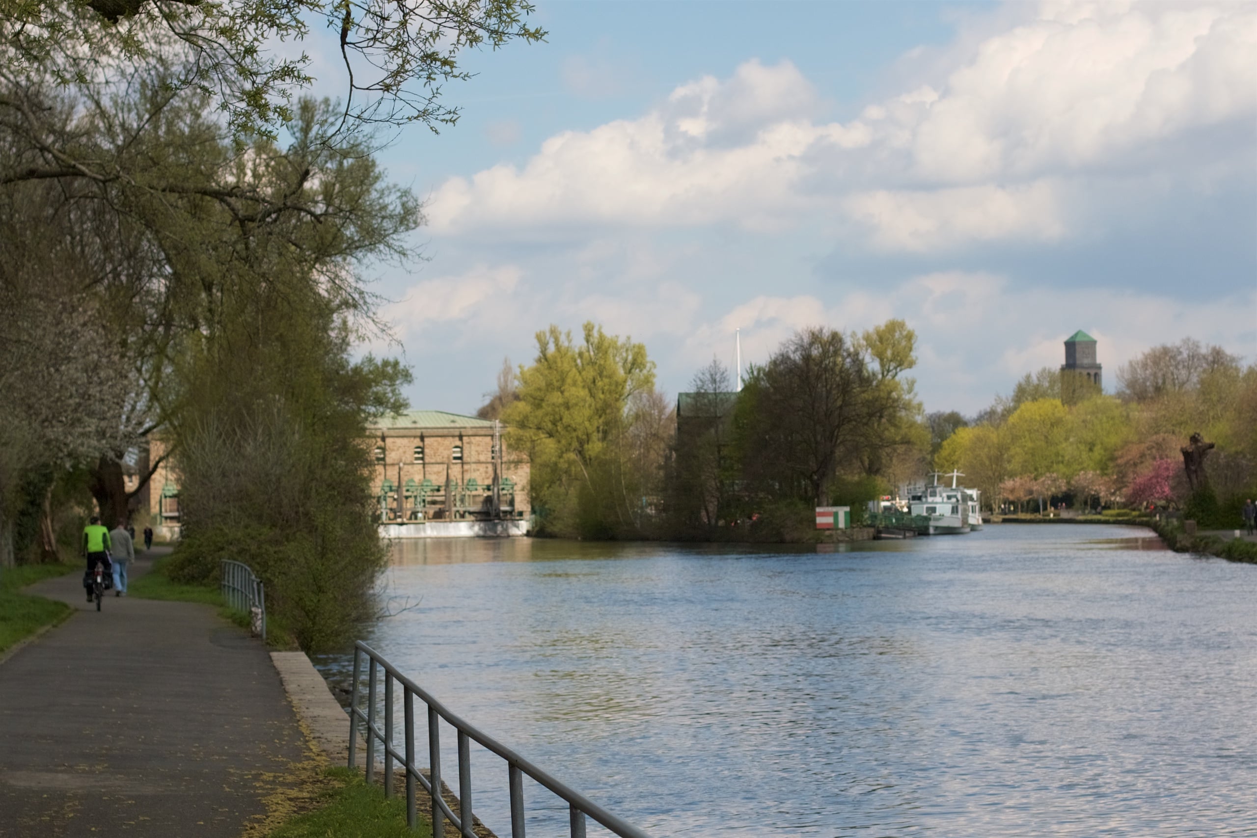Einen kurzen Abstecher durch den kleinen Park ums Schloss später setzten wir unseren Weg fort und fuhren am Aquarius Wassermuseum vorbei nach Duisburg. Schnell sind Unterschiede zum bisherigen Verlauf bemerkbar. Die Umgebung wird lauter, die Automobildichte größer, die Industrielandschaft nimmt mehr Platz ein. Heimat. Und doch ist der RuhrtalRadweg sehr schön gelegen und zeigt hübsche Fleckchen Duisburgs, die Songzeilen aus Dat is Duisburg von Die Bandbreite etwas widerlegen. Hier gibt es viel Grün zu sehen, außerdem den doch recht beschaulichen Stadtteil Duisburg-Ruhrort, der an Ruhr und Rhein gelegen ist, Brücken und Industriekultur.