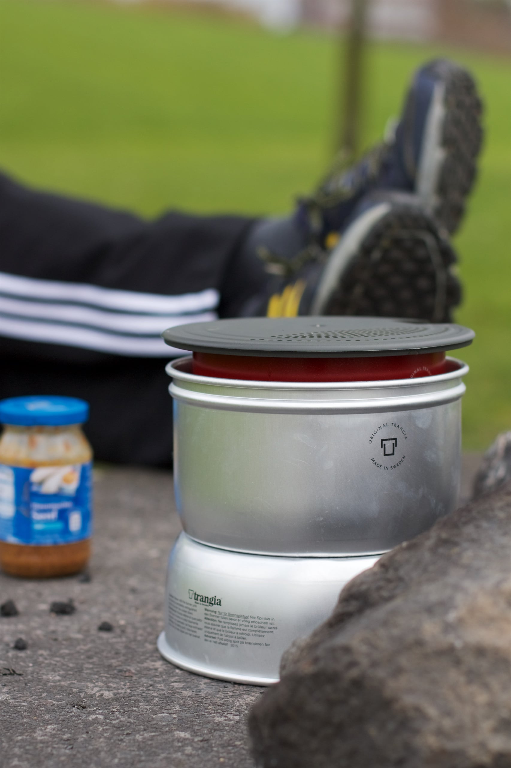 Für unseren Heimweg fuhren wir dann zunächst denselben Weg, über den wir kamen, zum Kreisverkehr zurück und folgten der Ruhrorter Straße, bis wir runter zum Rhein konnten. Ab hier ging es den EuroVelo 15 – oder auch Rheinradweg – entlang nach Hause und ich konnte wieder einen kleinen Teil meiner Befahrungen dieser Route abhaken. Auch, wenn ein abendliches Grillen in Aussicht stand, stärkten wir uns am Fuße des Deichs in Duisburg-Laar noch etwas. Der Trangia war schnell rausgeholt und wir machten uns ein paar mitgebrachte Würstchen heiß. Diesmal funktionierte auch endlich mal, was sonst nur einmal im Test zuhause bei Windstille klappte: Den Trangia mit Feuerstahl anzuzünden. Vielleicht klappte es zuvor draußen nie, weil ich dem Spiritus zur Rußdämmung zu viel Wasser beigemischt hatte? Solang ich nicht sicher sein kann, werde ich wohl leider weiterhin immer noch ein Notfallfeuerzeug mitführen müssen.