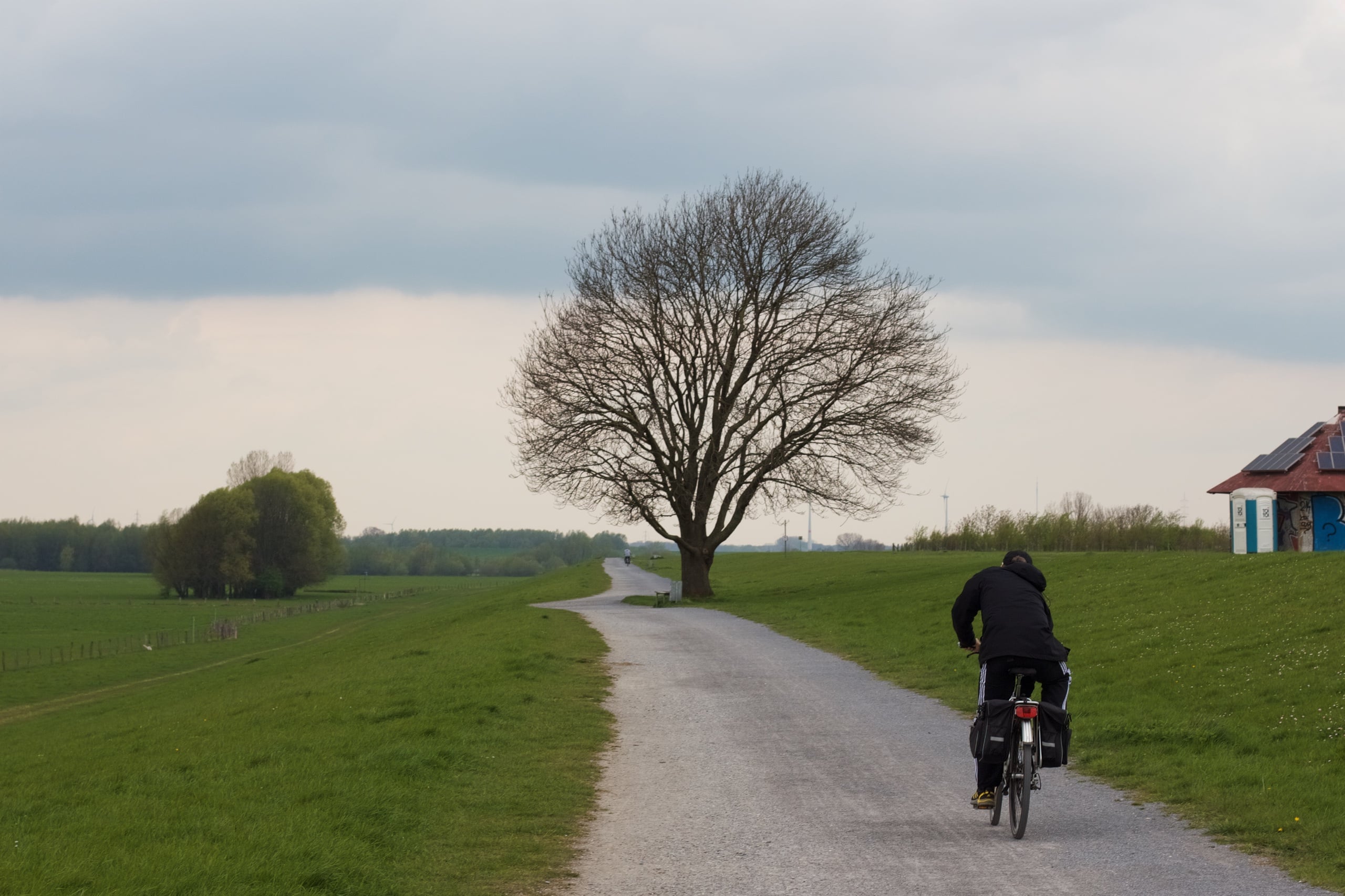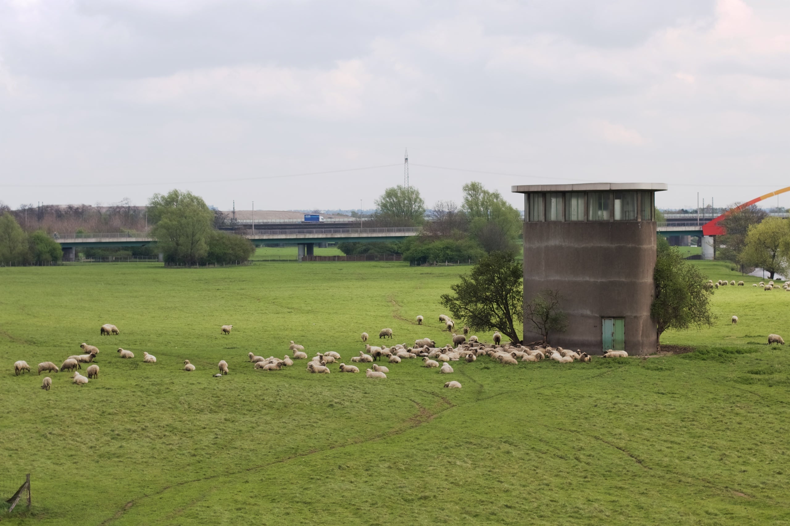 Nach der kleinen Stärkung ging es weiter, doch unsere Fahrt war nicht von großer Dauer und wurde von einer Horde grasender Schafe aufgehalten, die durch ihre Fluffigkeit unsere Aufmerksamkeit an sich zogen. Einige Photos später ging es dann aber doch weiter. Dem Wind trotzend und die aufkommende Kälte im Nacken. Vorbei am Alsumer Berg, vorbei an Duisburg-Marxloh, -Fahrn und -Walsum bis hin zur Rheinfähre, die Duisburg-Walsum mit Rheinberg-Orsoy verbindet. Wir wohnen rechtsrheinisch, also passieren wir diese ungenutzt und folgen weiter dem EV15 am Deich entlang und verlassen ihn erst am Stapp bei Dinslaken-Eppinghoven, wo wir auf einen weiteren altbekannten Fluss – die Emscher – treffen. Kurz danach ist unser Weg dann auch beendet und wir kommen heim. Mit neuen Bildern im Kopf, gefüllt mit kleinen neuen Erfahrungen und froh, im Warmen zu sein.